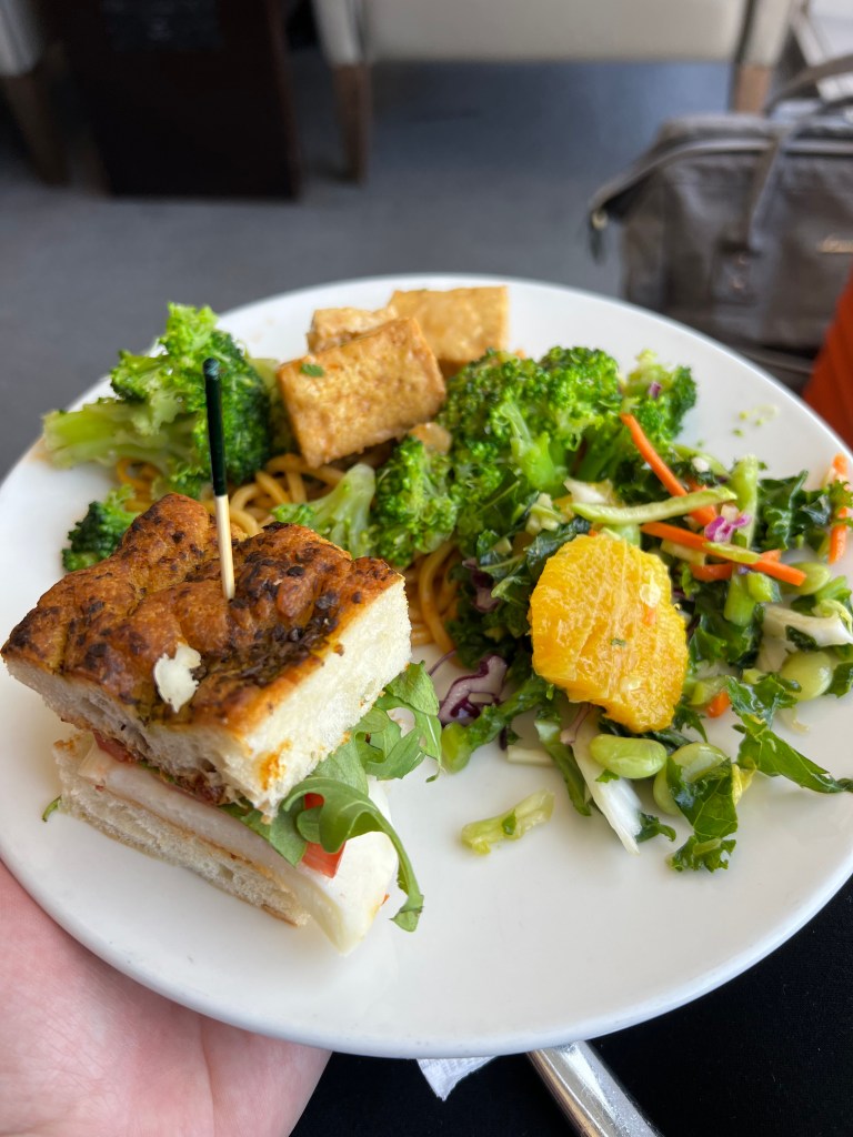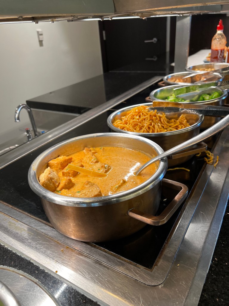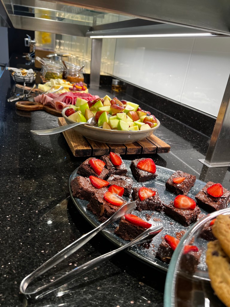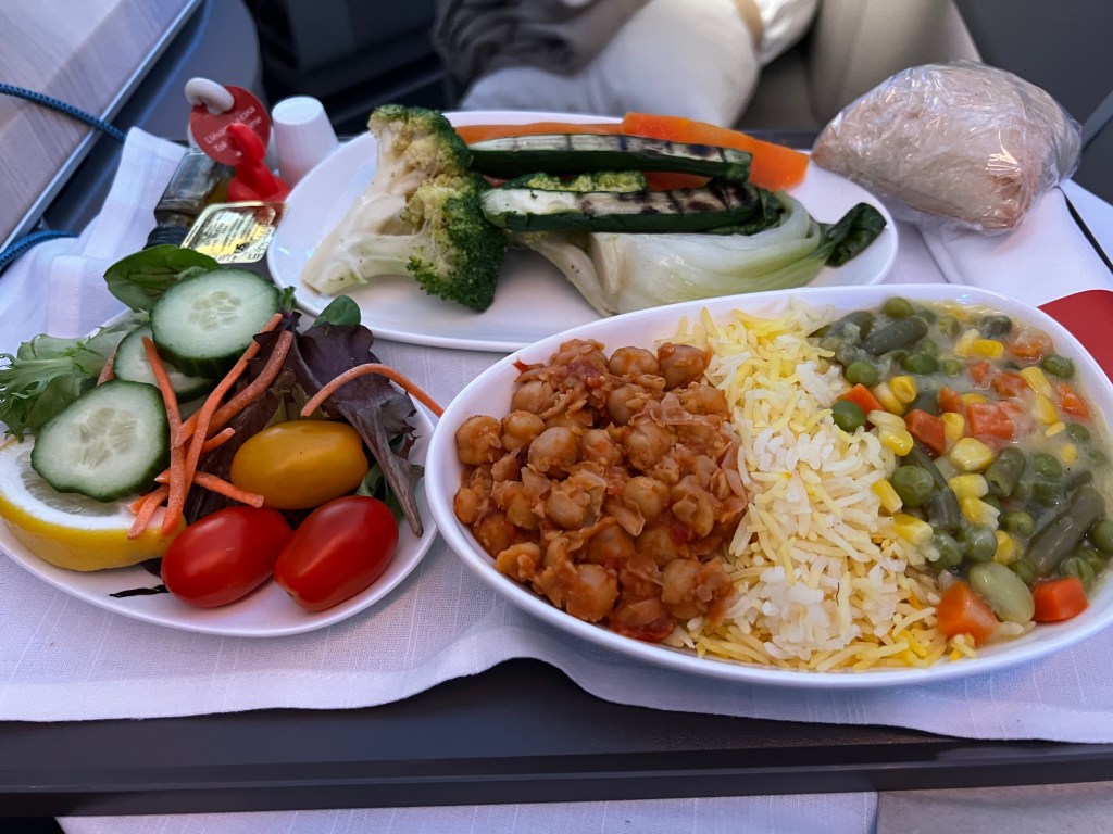 My ticket granted me access to the British Airways lounge, which had surprisingly good food! I don’t know why I had low expectations for this lounge, but I was pleasantly surprised to find an excellent green curry with tofu on the buffet.